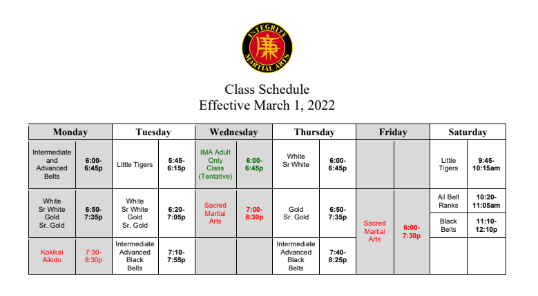 Share this: Click to email a link to a friend (Opens in new window) Email TweetLike Loading... Our Current Class Schedule November 13, 2022 / IMAWebAdmin