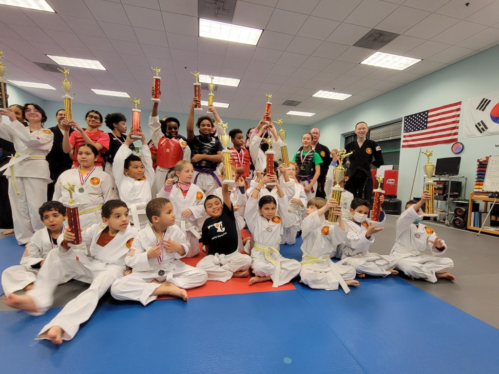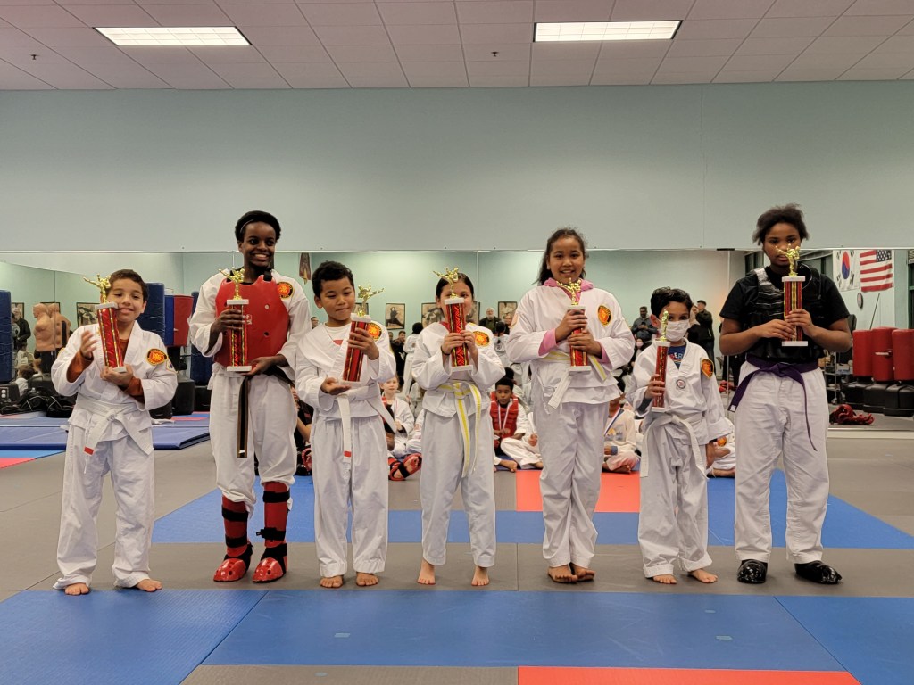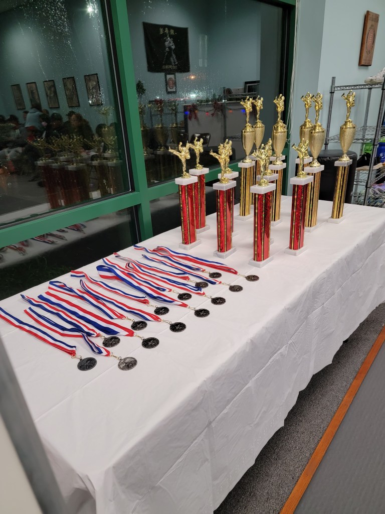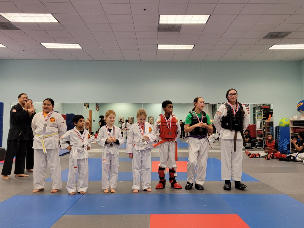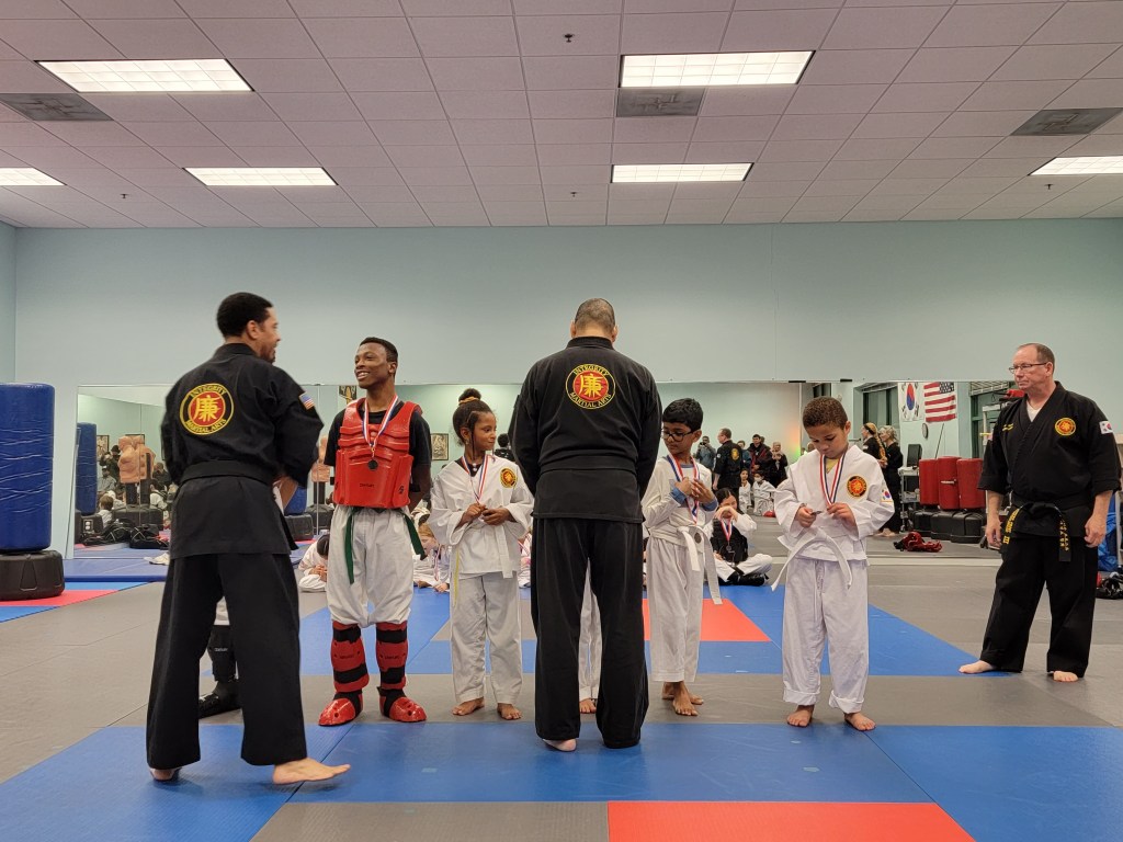 Our sparring tournament was super exciting. Four teams featuring combinations of Beginner, Intermediate and Advanced belts competed for trophies and medals.