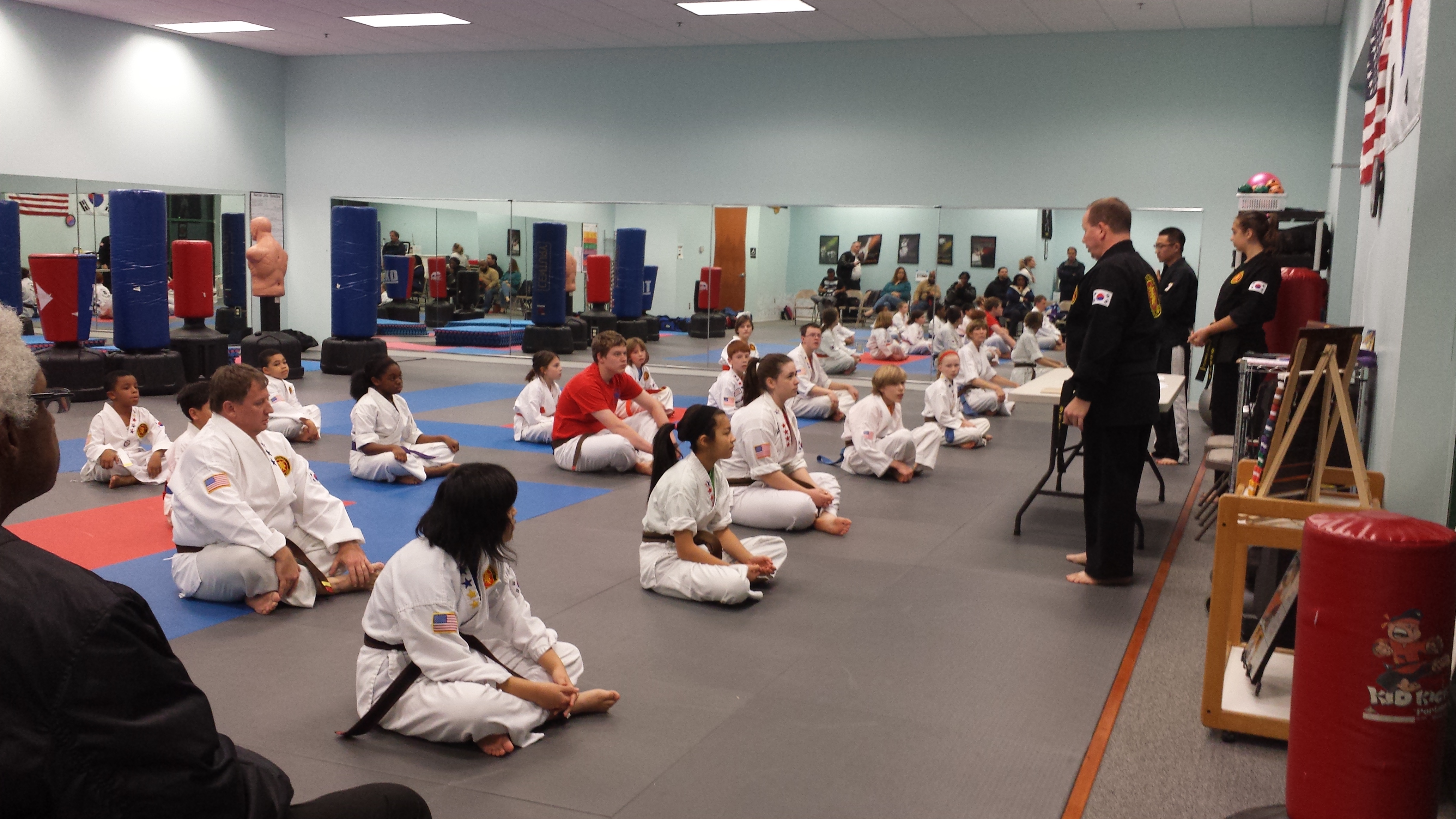 First, Mr. Frost started with a talk about what to expect during the belt test. The students sat in anjo while he spoke.
