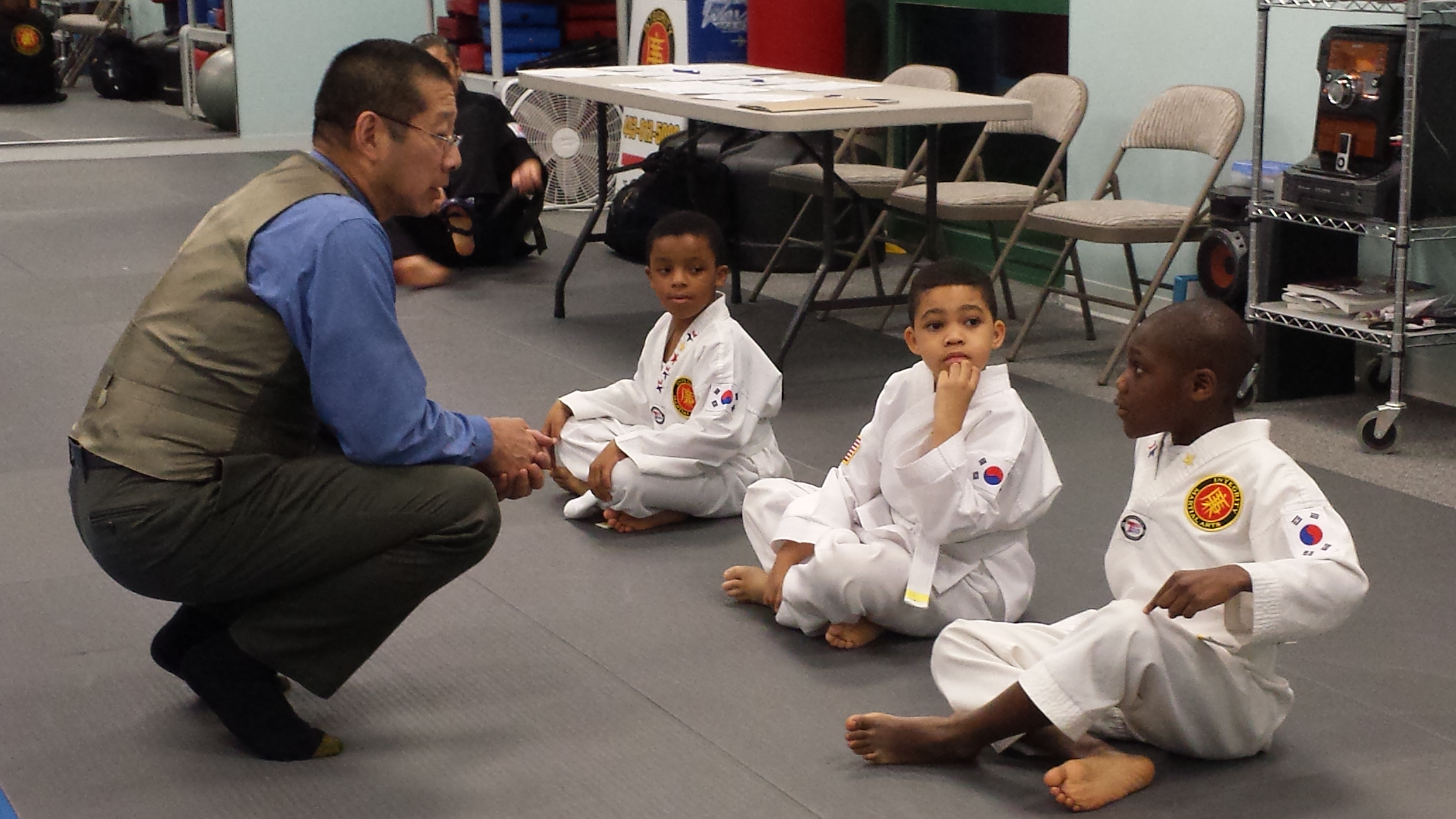 Mr. Lew had a small talk with the white belts about bopper sparring.